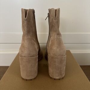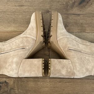 Steve Madden Dovesy Platform Tan Suede Heeled Lug Boots Booties Women's Sz 7.5