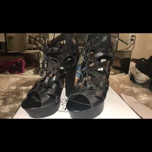 Think high! All leather and black! Only worn 4xs, minor scratches on the heels. Still in good condition!