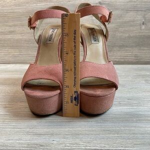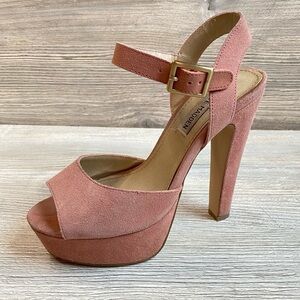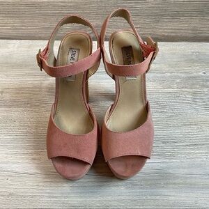 Steve Madden Dynamite leather suede coral colored platform heals. Buckle ankle strap. TX 11