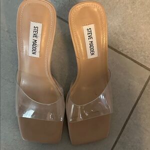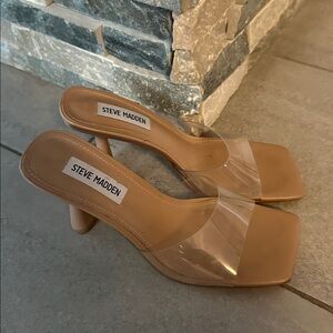 Steve Madden Elated Tan and Clear Block Heel Sandals 👡 Size 7