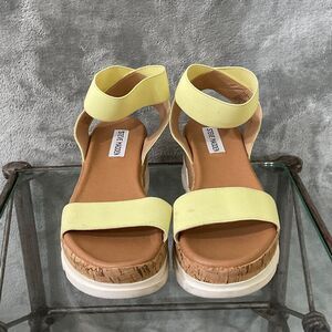 Steve Madden Elba Womens Size 8.5 Yellow Wedge Platform Ankle Strap Sandals