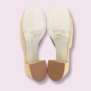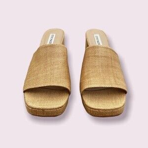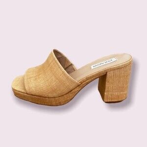 Steve Madden Elda Heels Beige Tweed Square Open Toe Sandals Y2K Womens Size 9.5