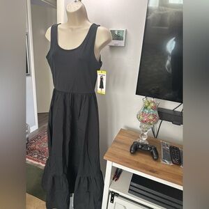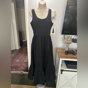 This elegant black sleeveless dress is perfect for any occasion. Its classic design offers a timeless look.