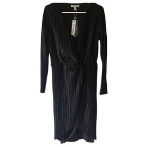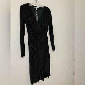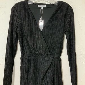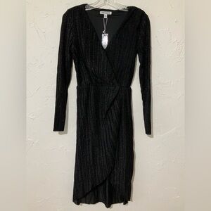 Steve Madden Elegant Crinkle Metallic Long Sleeve Black Dress Sz XS