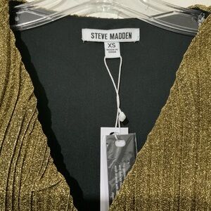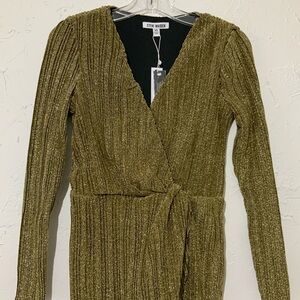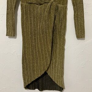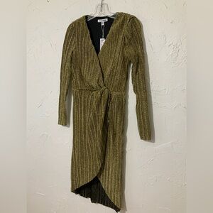 Steve Madden Elegant Crinkle Metallic Long Sleeve Gold Dress Sz XS