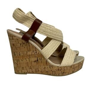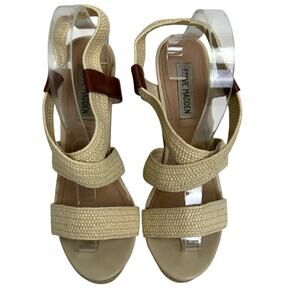 Steve Madden Elika Beige and Brown Platform Wedge Sandals Size 9