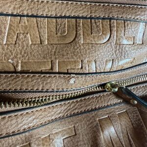 Small hole in the faux leather (pictured).