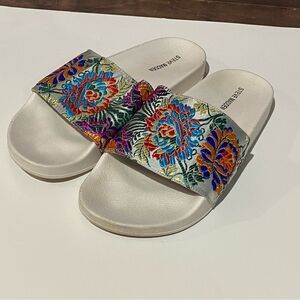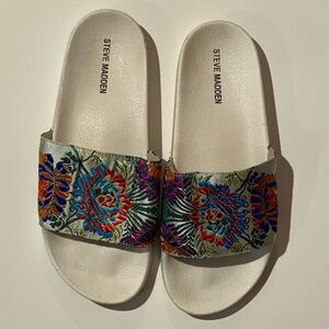 Steve Madden Embroidered Floral Starship Slide Sandals Women's size 10