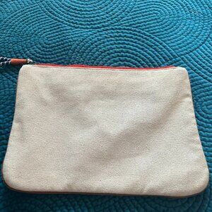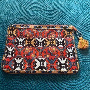 Vibrant Steve by Steve Madden JLunar Spice pouch with a bold, geometric embroidered pattern and tassel zipper pull. Perfect as a clutch, travel pouch, or tablet sleeve.