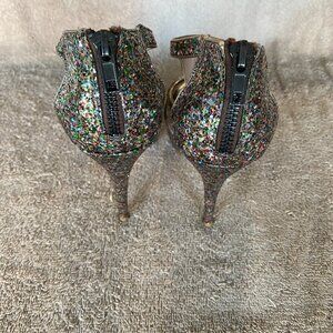 Shine bright in these stunning Steve Madden “Emele” Multi-Glitter Platform Heels! These heels feature a gorgeous multi-color glitter finish that catches the light from every angle, with a sleek strappy design and back zipper closure for a secure and stylish fit.