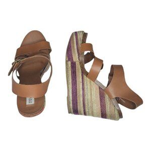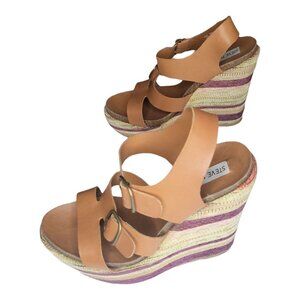 Steve Madden Espadrille Wedges Women Sz 8.5M Strappy Boho Striped Summer Hipster