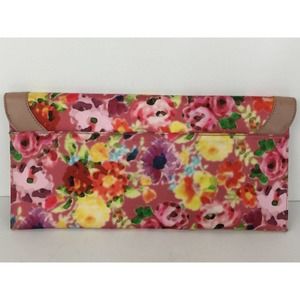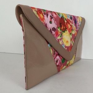 Steve Madden Evening Clutch Bag Purse Tan Leather Multicolor Floral PU