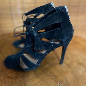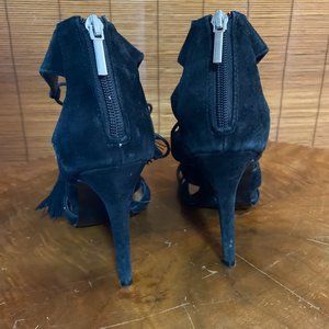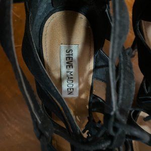 Steve Madden Faraah Black Front Tie Back Zip Heels Sandals Size 8 EUC