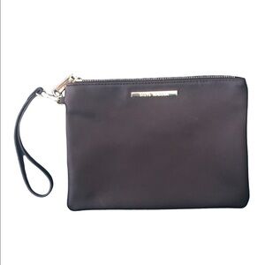 Steve Madden Faux Leather Clutch Wristlet Black Top Zip Logo Lined 9.5X7