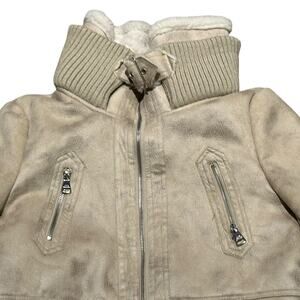 Steve Madden Faux Suede and Fur Womens Size Medium Full Zip Coat in Cream