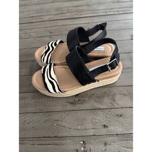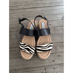 Steve Madden Fifer Espadrille Platform Wedge Sandals Black Zebra Pony Hair Size 7.5