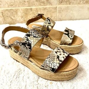Steve Madden Fifer Python Snake Print Espadrille Wedge Sandals Platform.