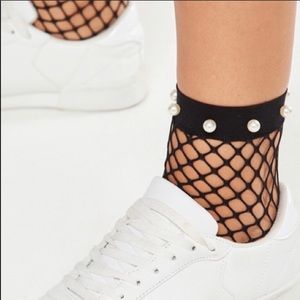 Steve Madden Fishnet Pearl Socks. New with tags. Show off your playful side while wearing flats or low-tops with the Fishnet Pearl ankle socks from Steve Madden!
