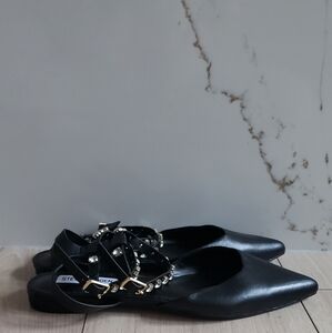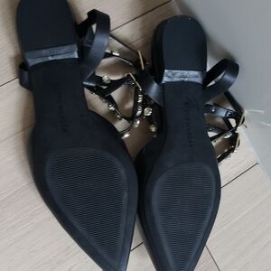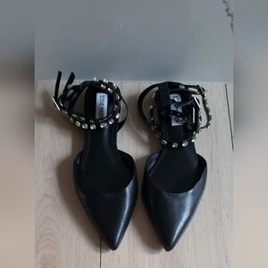 Keywords: steve madden flats, studded flats, pointed toe shoes, ankle strap flats, black womens flats, edgy chic flats, size 7.5