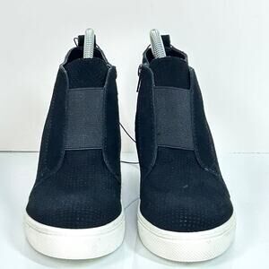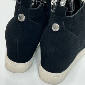 Steve Madden Flavy Wedge Heel Sneaker Shoes Suede Side Zipper Black Womens Size 6