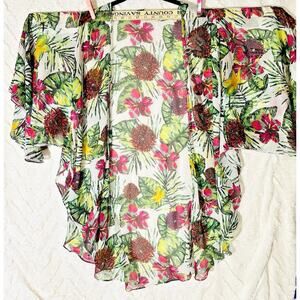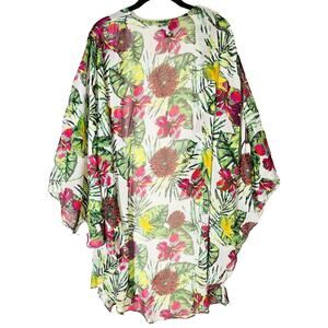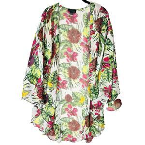 Steve Madden Floral Beachy Kimono Swim Layer One Sz Chiffon Sheer Open Oversized