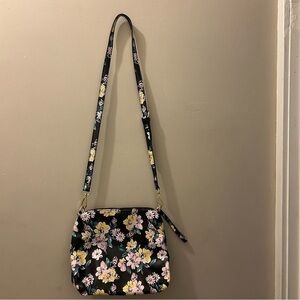 Chic and stylish floral crossbody bag in black. Perfect for adding a touch of elegance to any outfit.