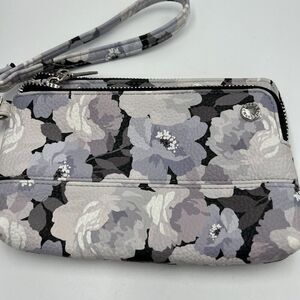Steve Madden Floral Black & Gray Clutch Wristlet Wallet 2 Zip Pockets