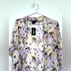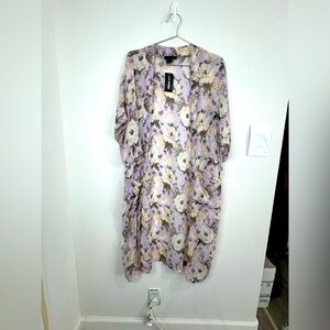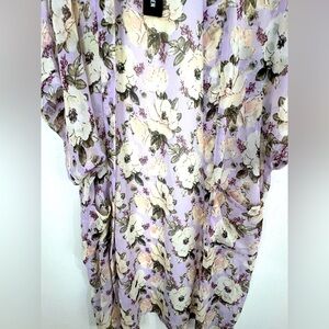 Complete your look with this elegant Steve Madden Floral Kimono, featuring a soft lavender base adorned with a beautiful floral print. The lightweight, flowy fabric makes it ideal for layering over casual or dressy outfits, and the duster length adds a touch of sophistication.