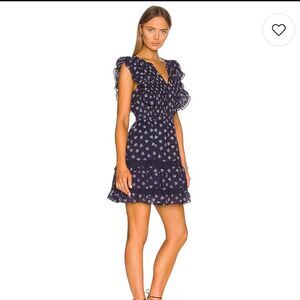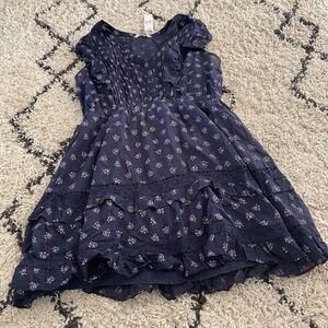 Lightweight voile fabric with pleated bodice and ruffled cap sleeves and hem