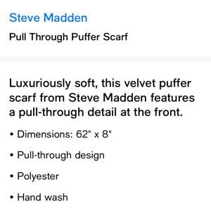 Luxuriously soft, this velvet puffer scarf from Steve Madden features a pull-through detail at the front.
