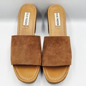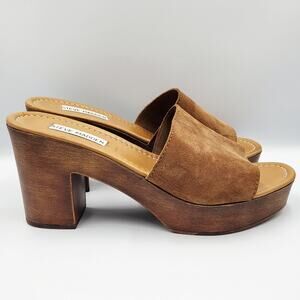 Steve Madden Fran Brown Leather Suede Wooden Platform Sandals Women's Size 10