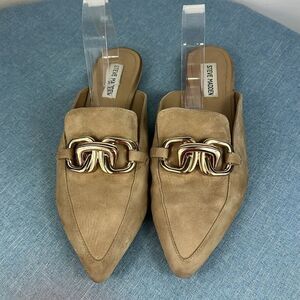 Steve Madden Friends Tan Suede Chain Pointed-Toe Loafer Slides Size 10 M
