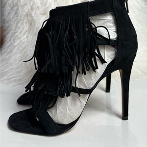 Steve Madden Fringly Stiletto Sandal Suede Black Leather ~ Size 7.5, great used condition without the box.