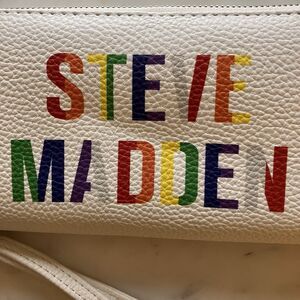 Steve Madden Full Size Zip Up Wallet Colorful Wristlet White Rainbow T024K