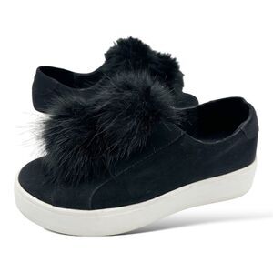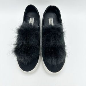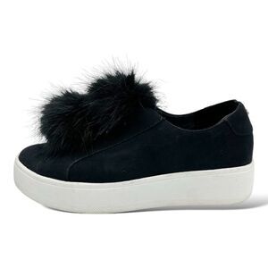 Steve Madden Furlie Bryanne Black Pom Pom Platform Wedge Slip On Sneakers Sz 6