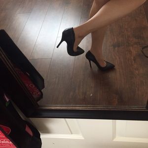 I've worn this a few times to weddings and graduation! They're still in perfect conditions s very classy, but they do have signs of wear and one slight scratch that is unnoticeable. The heel length is approx. 4 inches. Originally $110