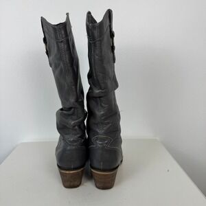 Steve Madden Gammbble Gray Leather Tall Western Cowboy Heel Boots Women 8.5