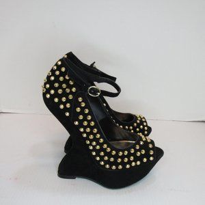 Steve Madden Gammblee Black Gold Studded Wedge Platform Heels