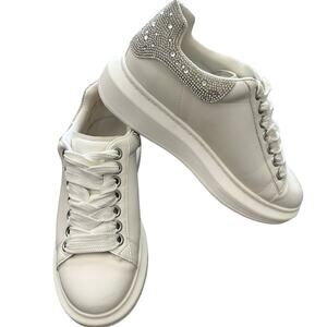 White Canvas Sneaker with rhinestone embellishment (missing 1 rhinestone)