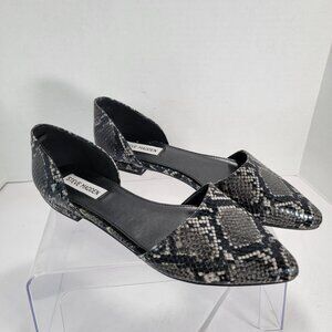 The Steve Madden snakeskin flats offer a fashionable yet versatile choice for various settings. Designed with a pointed toe and d'Orsay style, these flats combine elegance and comfort. Ideal for professional or casual outfits.