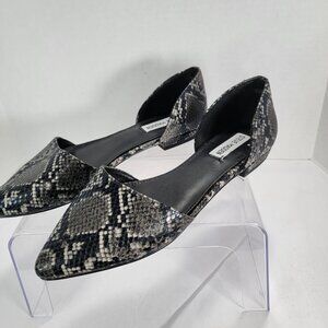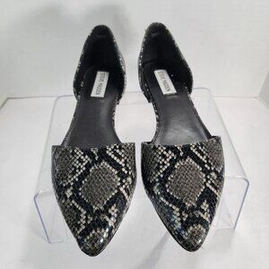 Steve Madden Genius Womens 8 Snakeskin Pointed Toe Flats Black White Office Business