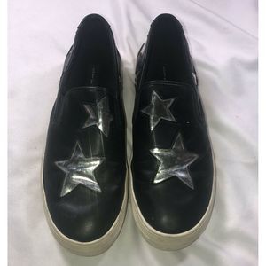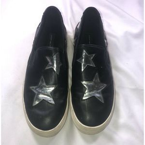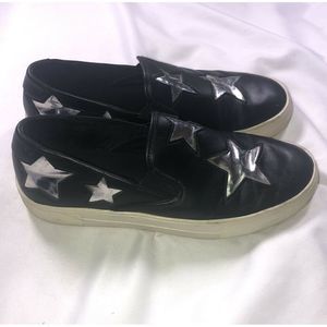 Steve Madden Sneakers Black Leather Silver Star Slip On Shoes Womens Size 10. Condition is Pre-owned. Shipped with USPS Priority Mail.