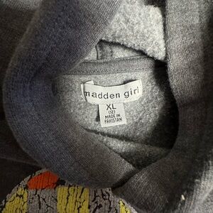 This Steve Madden girls' 2 piece set includes a hoodie and skirt making it such a cute set! The hoodie was slightly cropped. The outfit features a solid pattern, long sleeve pullover hoodie with a black skater skirt. Ideal for casual occasions, this set is machine washable and made of a blend of polyester and cotton. It is a regular fit, suitable for girls in size 12 or XL. Perfect for school-themed outfits, it is designed for winter, fall, and spring wear. Please view photos for measurements.