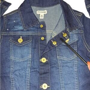 Steve Madden Girls Faded Denim Jacket Sz 6X | Stretch Jean Jacket Dark Wash NWT