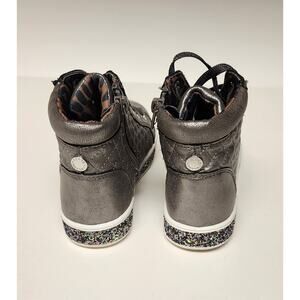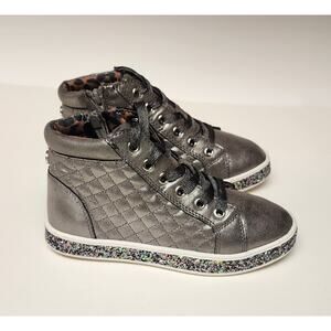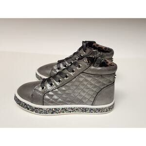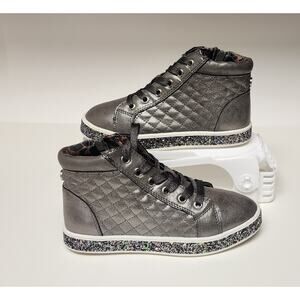 Steve Madden Girls JCarlson High-Top Sparkle Sole Silver Sneaker Size 2.
