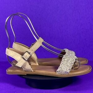Steve Madden Girls Jnoahh Rhinestone Strappy Sandals Sparkle Open Toe Brown 4