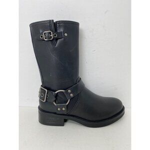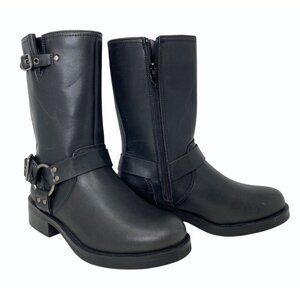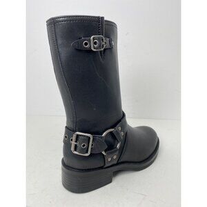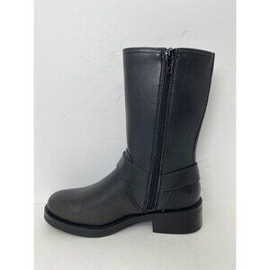 Steve Madden Girls Size 2 Beckky Black Faux Leather Side Buckle Zipper Boots New