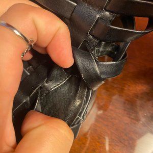 Heels are worn, but in good condition (reference pictures for scuffs, wears, and imperfections). Size 7.5M US Size.