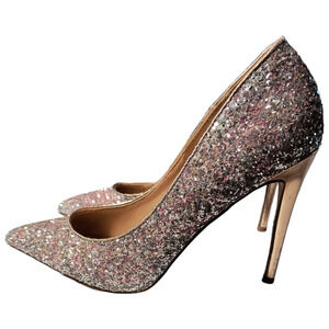 Steve Madden Glitter Pumps Women's size 9M Pink Multicolor with Gold 4.5 Heel Shoes