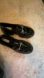 Glossy black loafers with chunky soles. Sleek design with metallic accents. Perfect for a bold look. Wore once